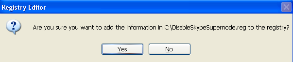 1. Copy the following text and save it as “DisableSkypeSupernode.reg” :